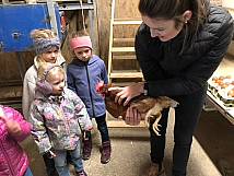 Auch ein Huhn durfte gestreichelt werden; wie weich sich das Federkleid anfühlte!