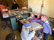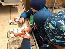 Mit grosser Begeisterung und voller Eifer füllten die Kinder Eierkarton um Eierkarton und legten Eier auf das Förderband der Sortiermaschine.